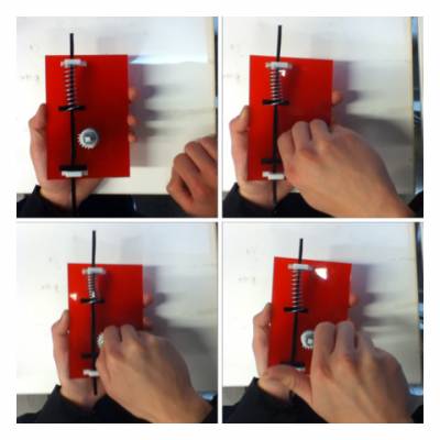 The gear with missing teeth will push the rack up until the teeth no longer mesh, and the spring will push the rack back down to the initial position.